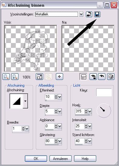 Nu heb je de Voorinstelling Metalliek opgeslagen en kun je daar op een